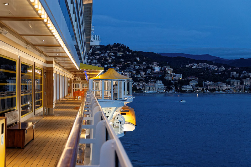 Die umlaufende Promenade der Costa Diadema unter freiem Himmel auf Deck 5