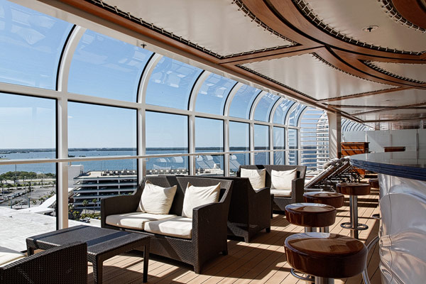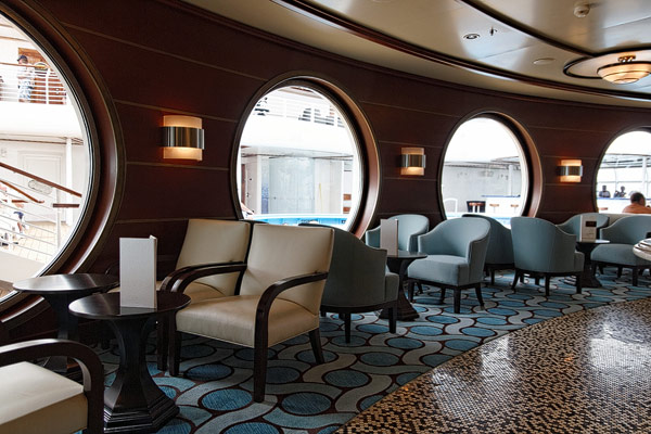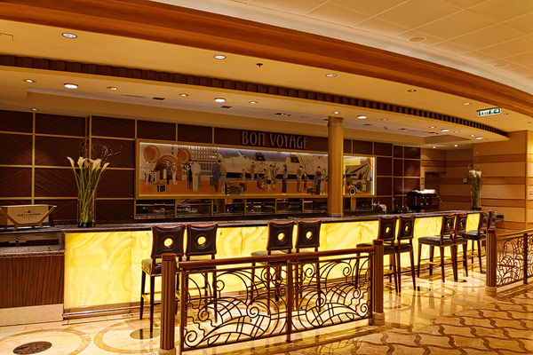 Bars und Cafes der Disney Dream: 687 Lounge Sports Bar, Bon Voyage, Cove Cafe, Cove Bar, Currents Bar, Waves Bar, Meridian, Vista Cafe, The District, Pink Champagne Bar, Skyline Lounge