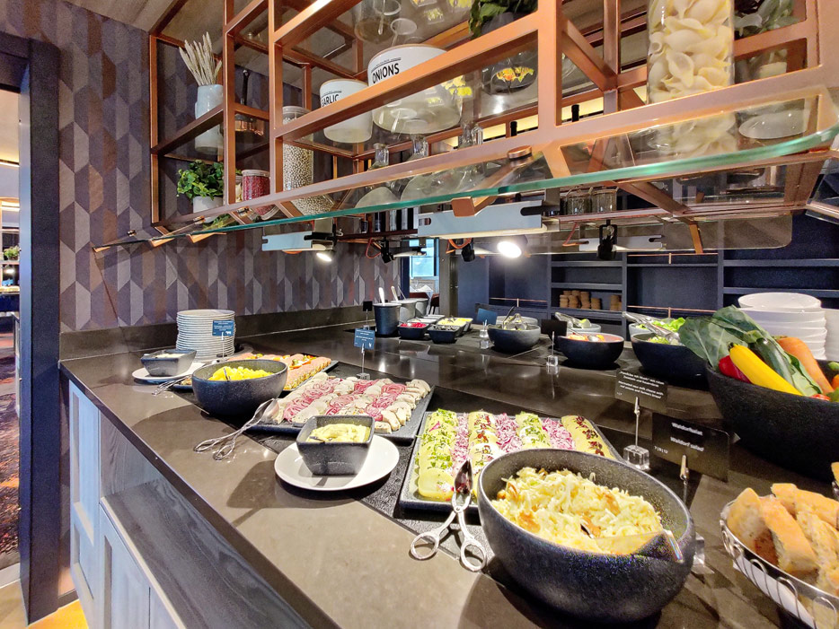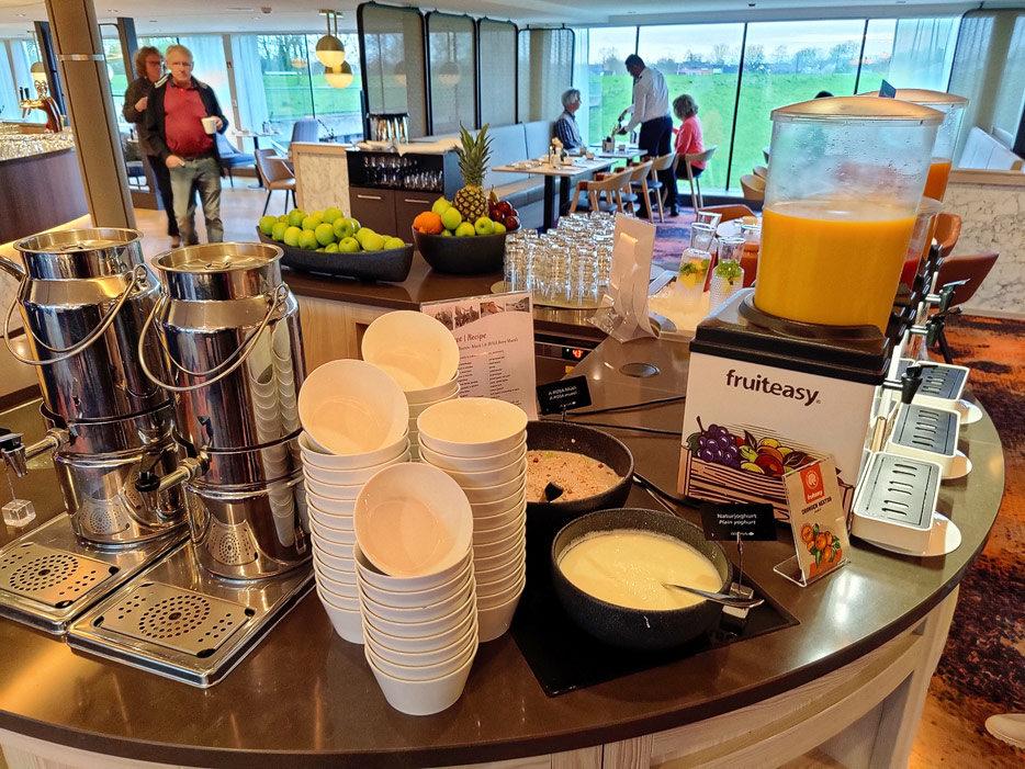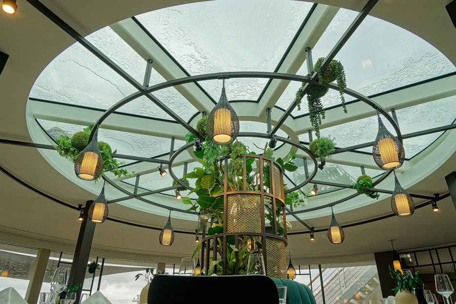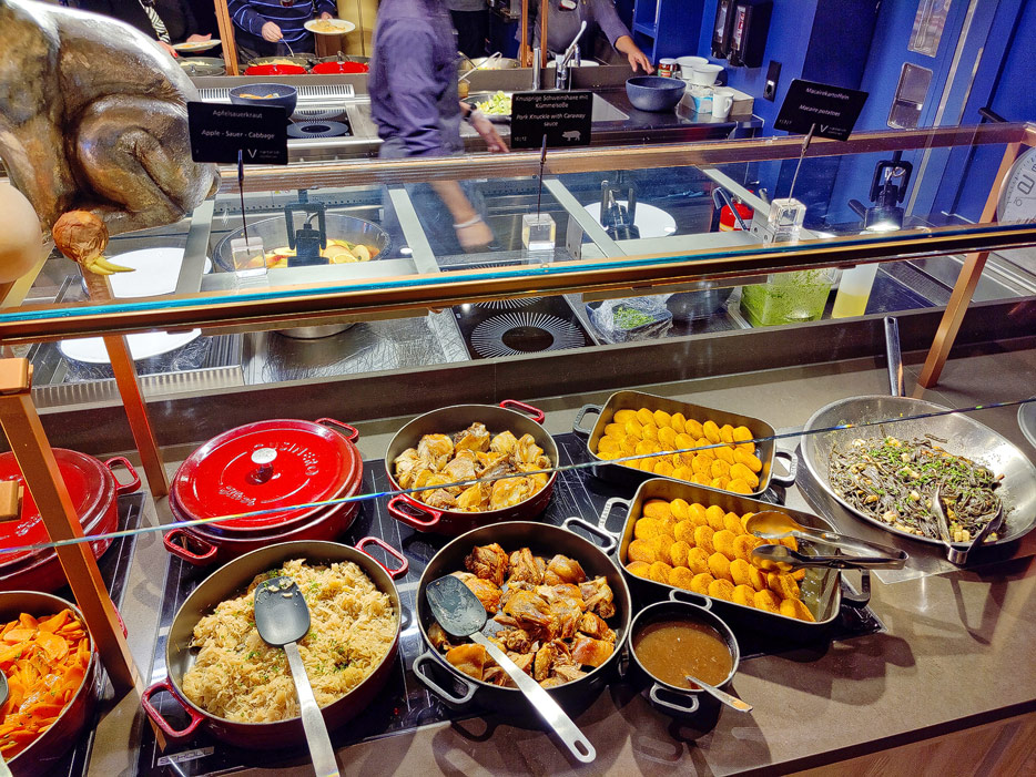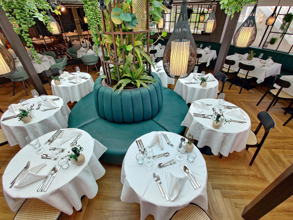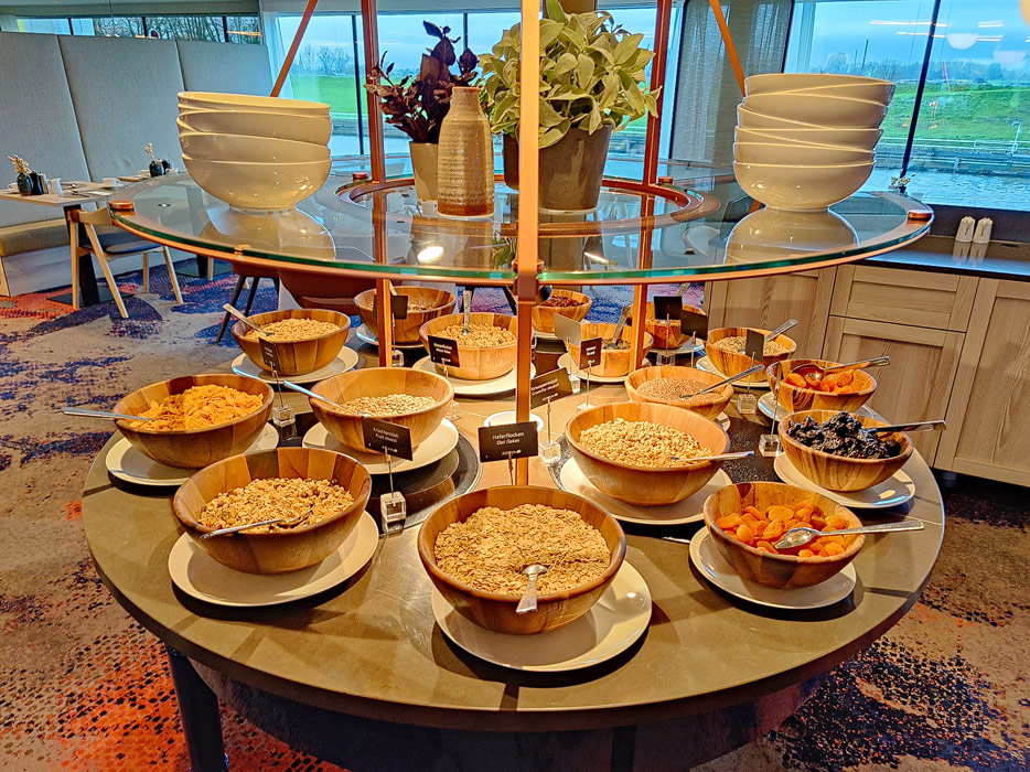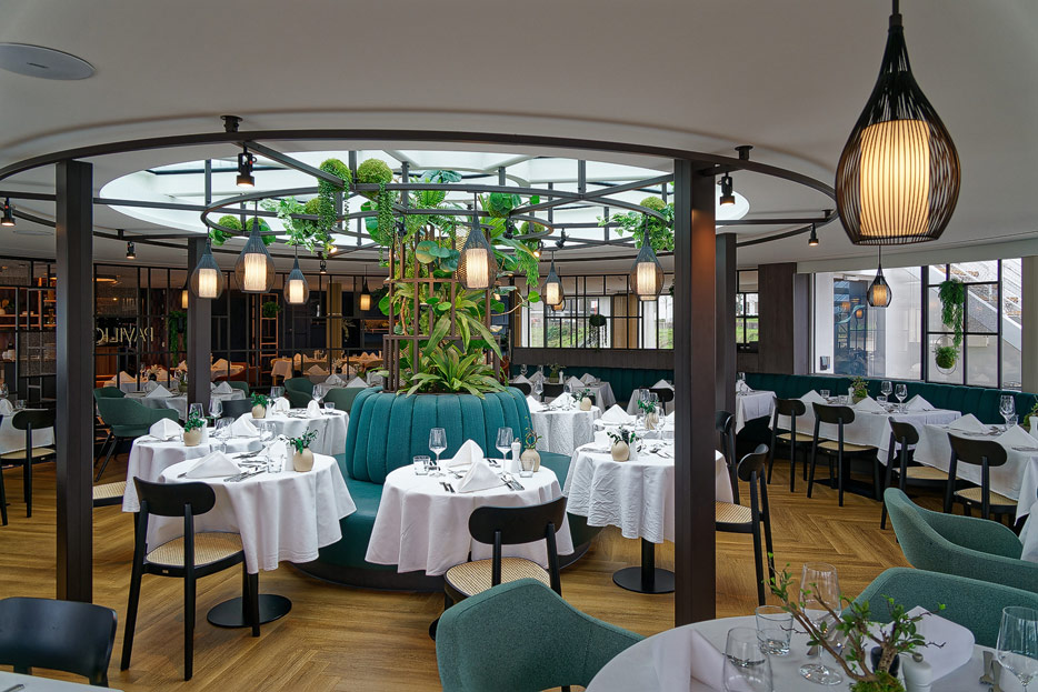 Bilder der Restaurants auf der A-Rosa Sena: Market Buffet-Restaurant mit Pavilion und River-Side sowie des Spezialitätenrestaurants Sena Grill