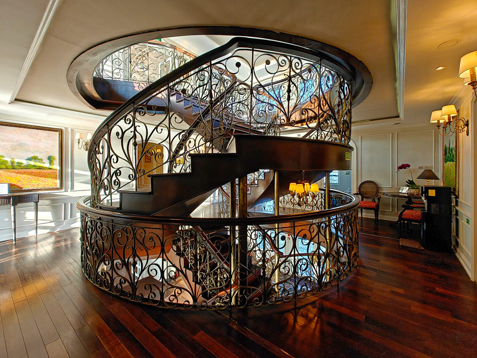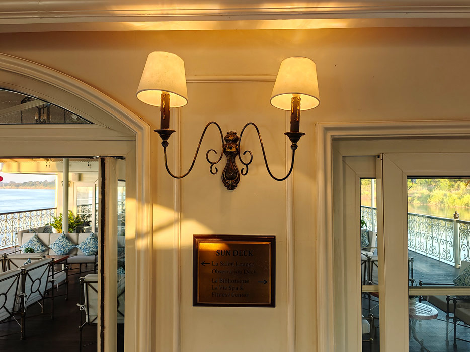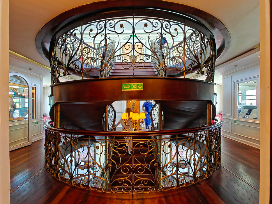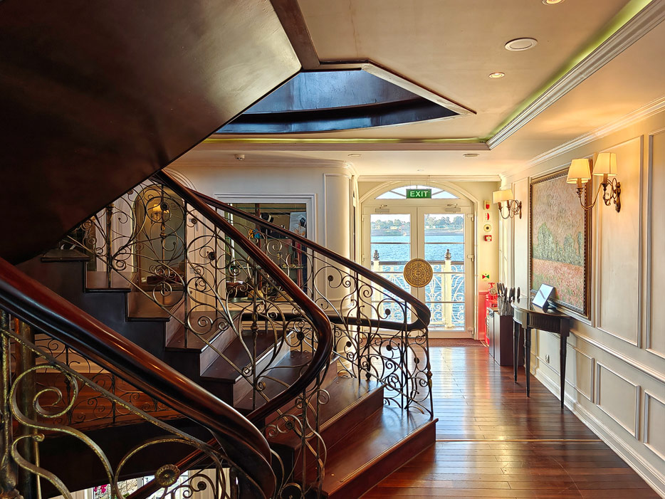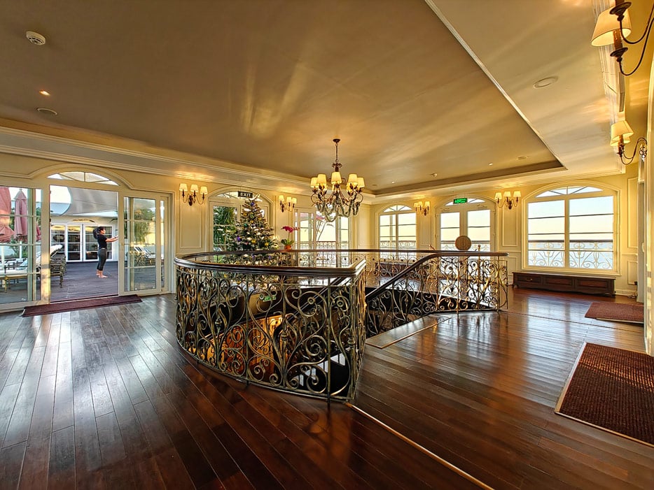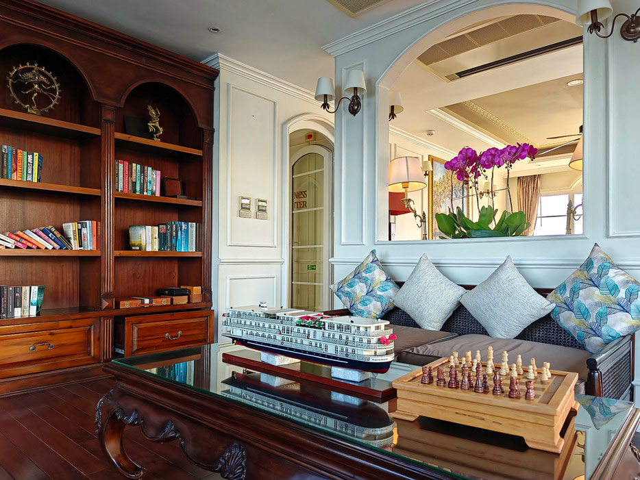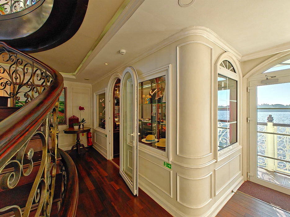 Bilder sonstiger Bereiche der Mekong Navigator: Bibliothek, Treppenhaus, Shop