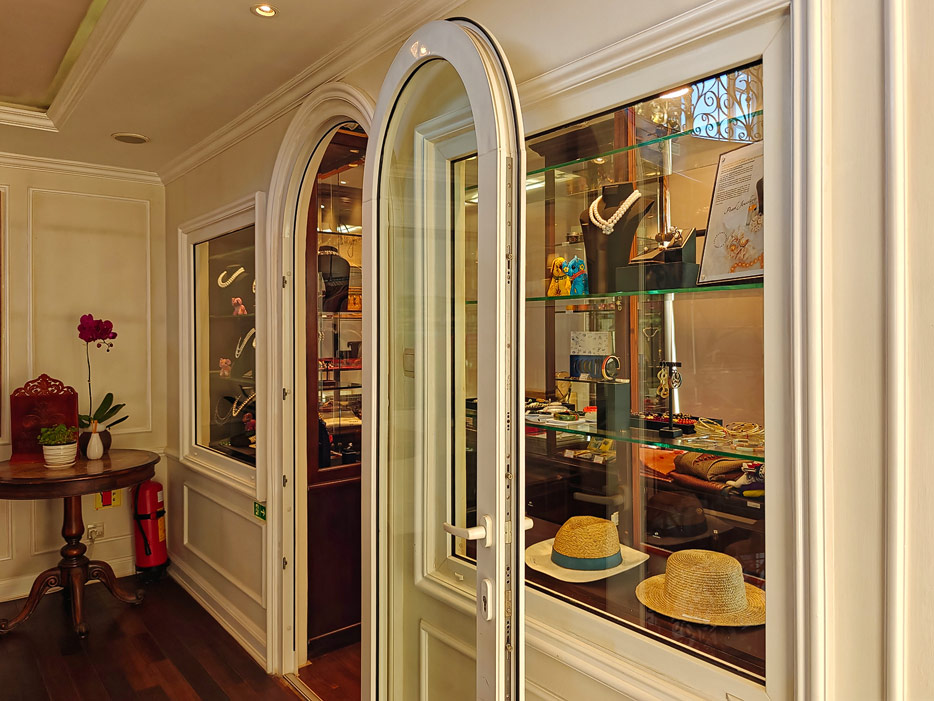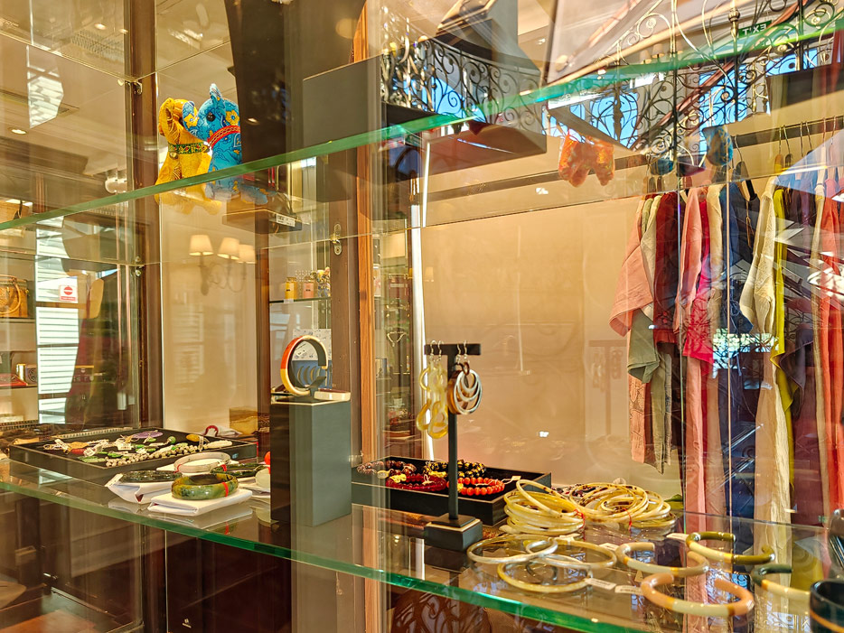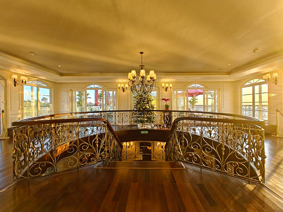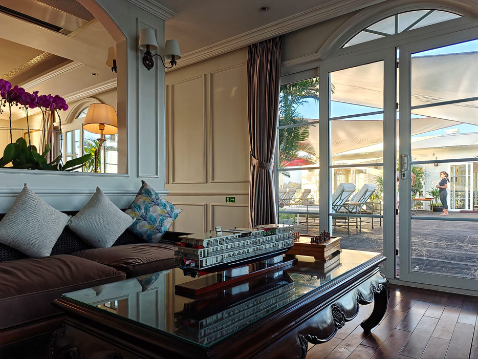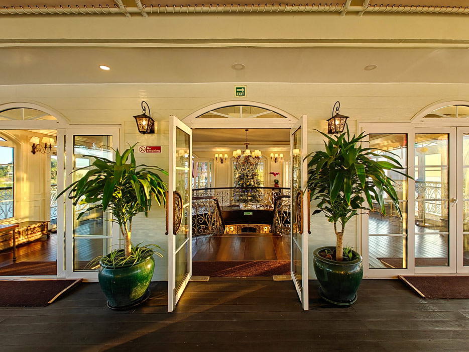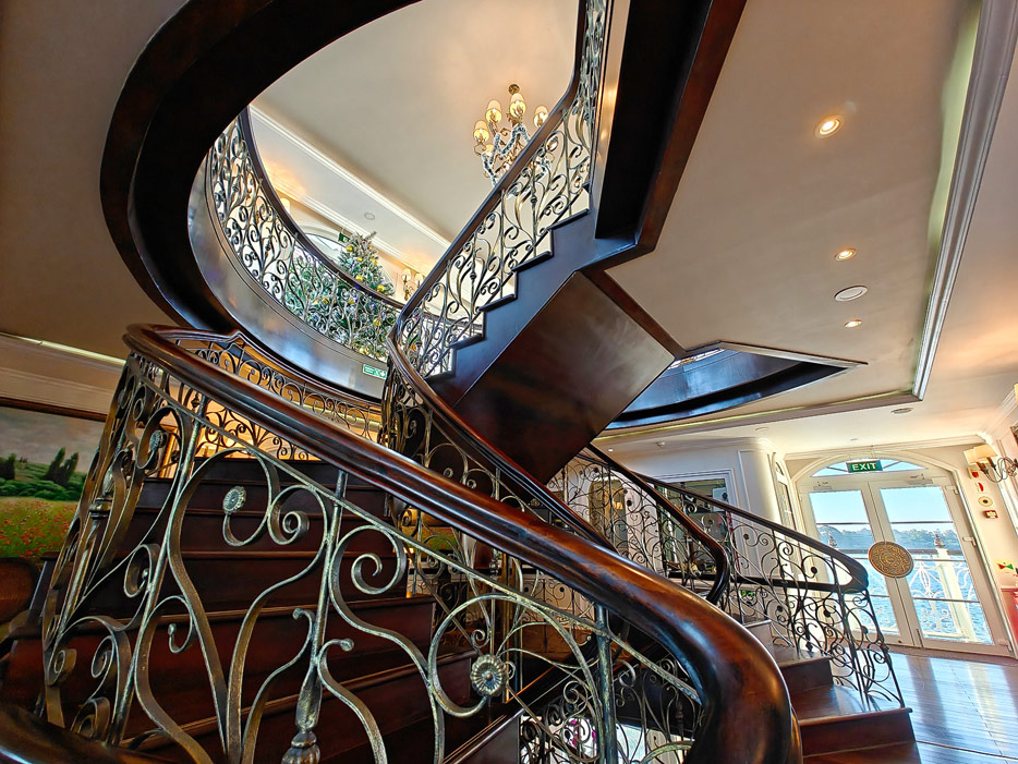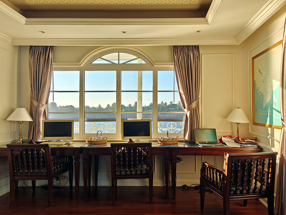 Bilder sonstiger Bereiche der Mekong Navigator: Bibliothek, Treppenhaus, Shop