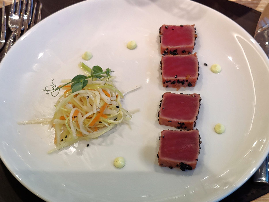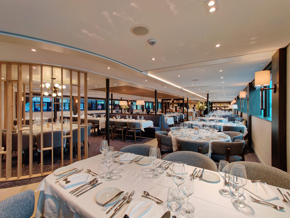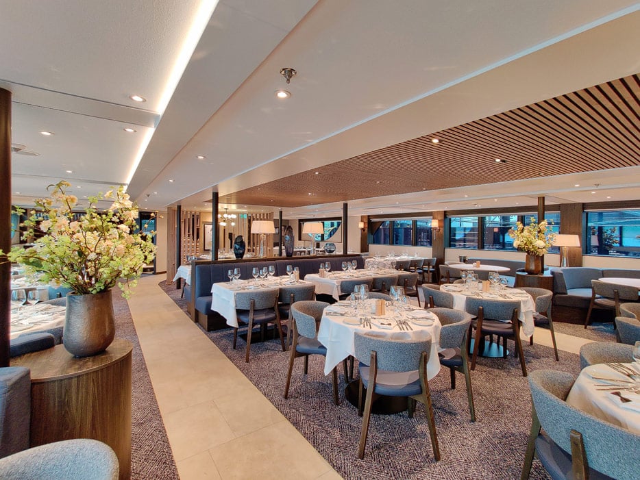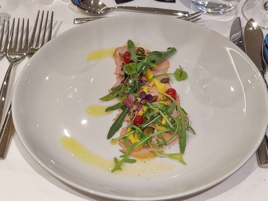 Kreuzfahrtschiff-Bilder › Flusskreuzfahrt › Viva One › Restaurants Viva One Restaurants Bilder aus dem Bistro und dem Riverside-Restaurant der Viva One Restaurant RiversideRestaurant RiversideRestaurant RiversideRestaurant RiversideRestaurant RiversideRestaurant RiversideRestaurant RiversideRestaurant RiversideRestaurant RiversideRestaurant RiversideRestaurant RiversideRestaurant RiversideRestaurant RiversideRestaurant RiversideRestaurant RiversideKalbscarpaccioCreme vom weißen Spargel, Vanille, FlusskrebsThunfisch-Tataki, Wasabi-MayonnaiseRucola-Salat, Rohschinken, KirschtomatenBasilikum-Sorbet mit LimoncelloPernod-flambierte WildwassergarnelenDoradenfilet mit weißem TrüffelschaumRosa gebratenes Medaillon vom FinderfiletKonfierte, kreolische Maispoulardenbrust‹123›