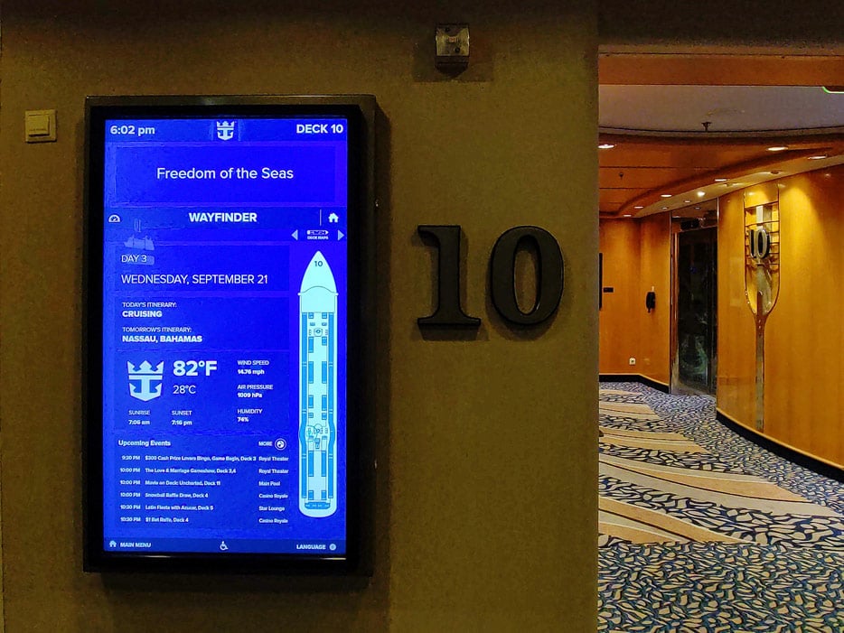 Bilder sonstiger Bereiche auf der Freedom of the Seas, zum Beispiel Rezeption, Aufzüge und Treppenhäuser