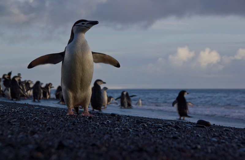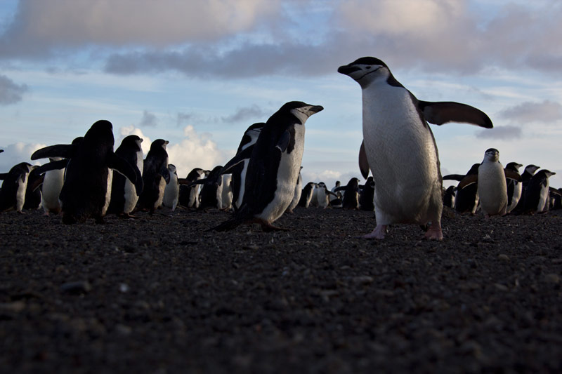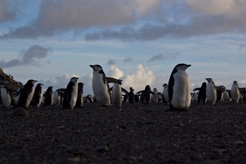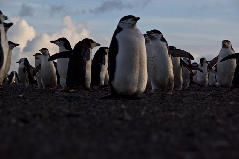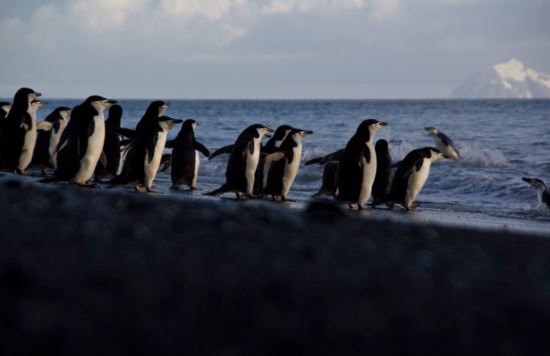Pinguine der Süd-Shetland-Inseln und der antarktischen Halbinsel: Eselspinguine (Gentoo Penguins), Zügelpinguine (Chinstrap Penguins), Adelie Pinguine, Macaroni Pinguine