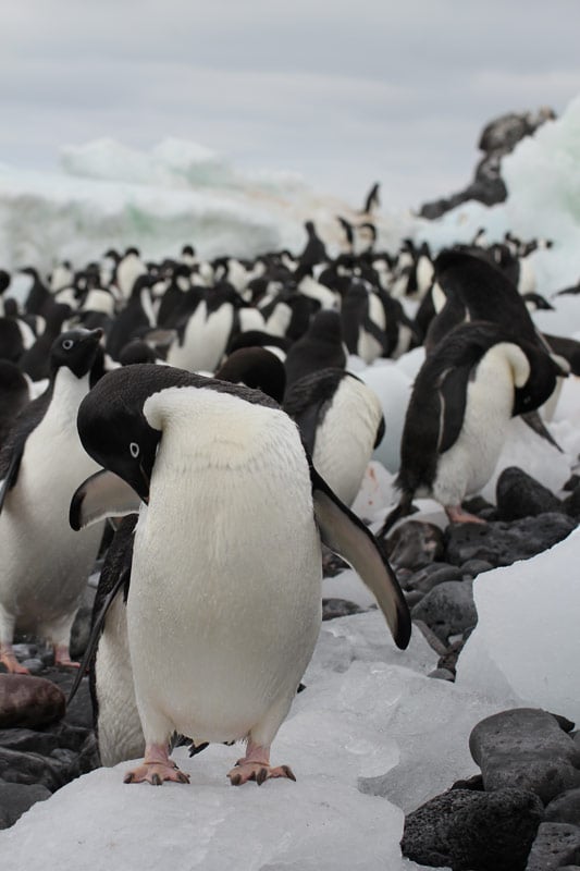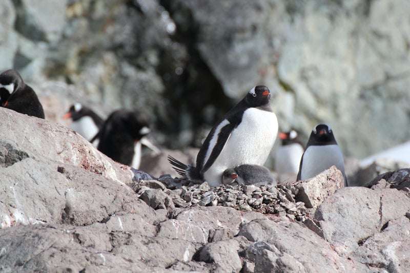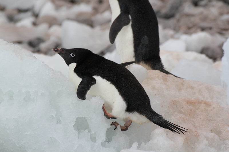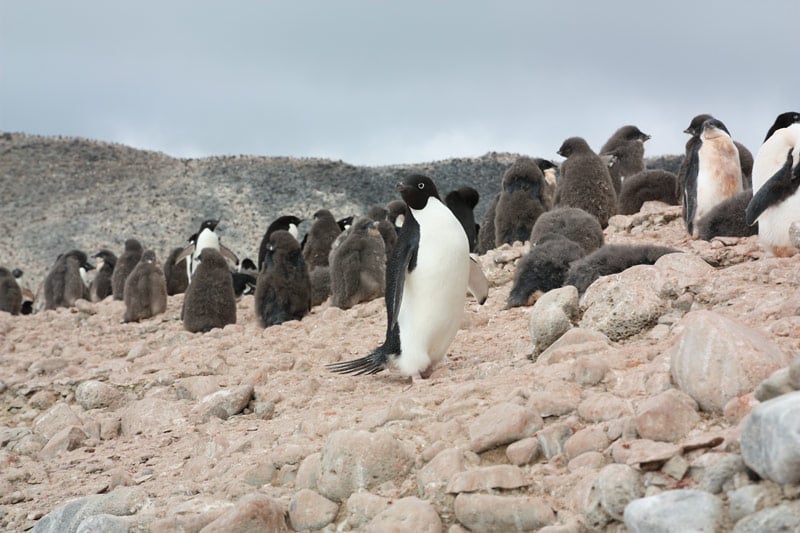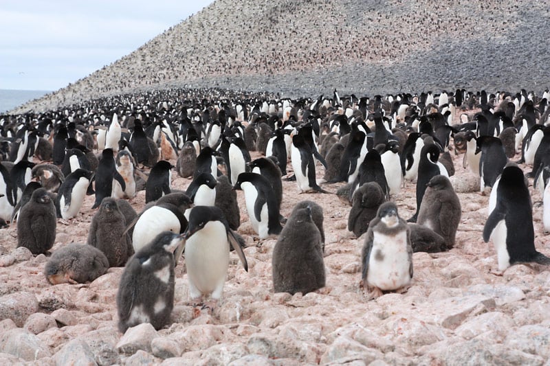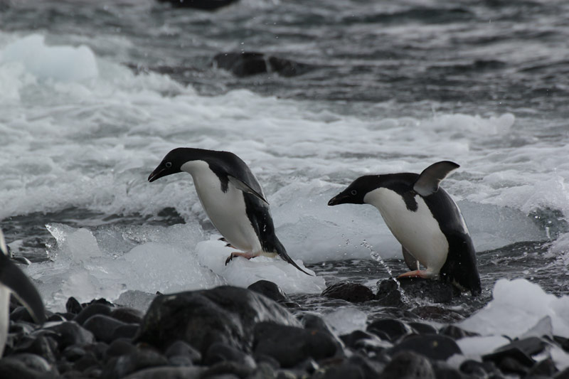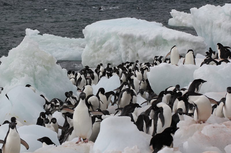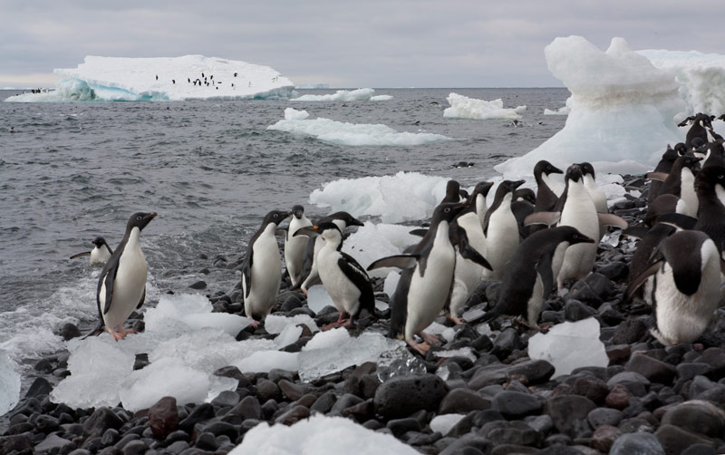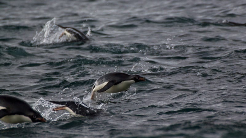 Pinguine der Süd-Shetland-Inseln und der antarktischen Halbinsel: Eselspinguine (Gentoo Penguins), Zügelpinguine (Chinstrap Penguins), Adelie Pinguine, Macaroni Pinguine