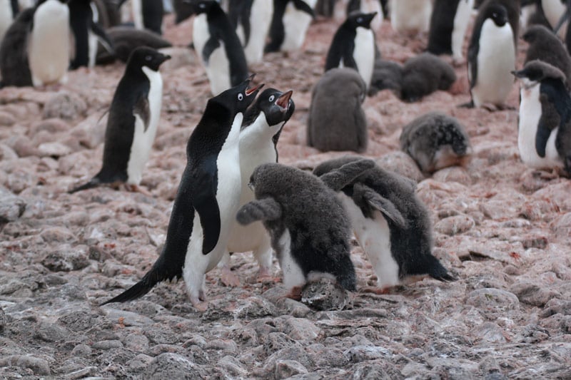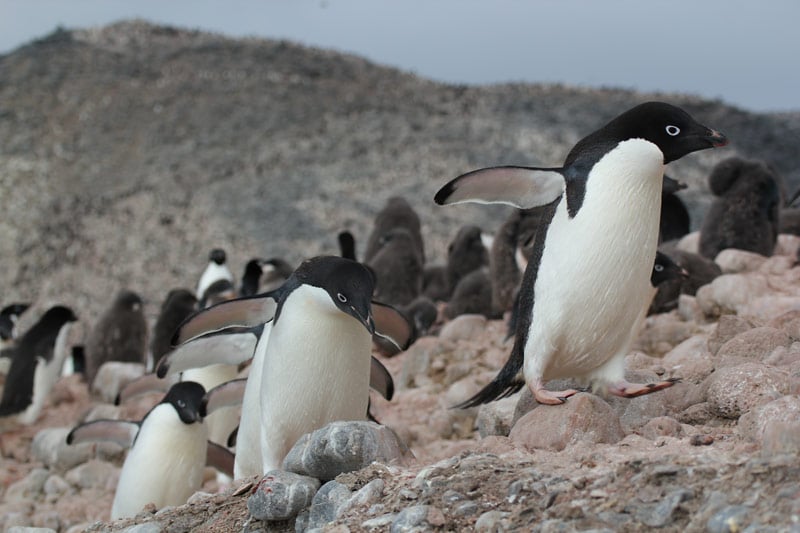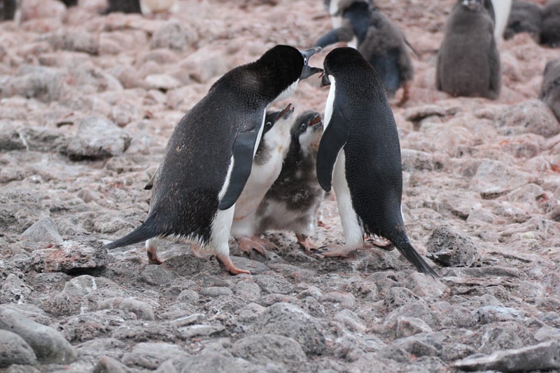 Pinguine der Süd-Shetland-Inseln und der antarktischen Halbinsel: Eselspinguine (Gentoo Penguins), Zügelpinguine (Chinstrap Penguins), Adelie Pinguine, Macaroni Pinguine