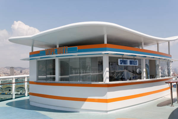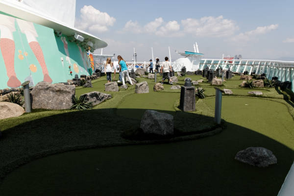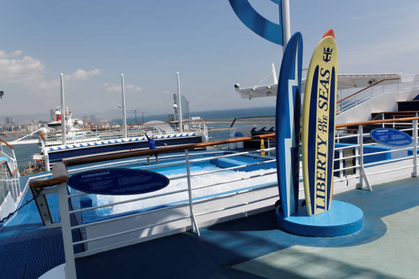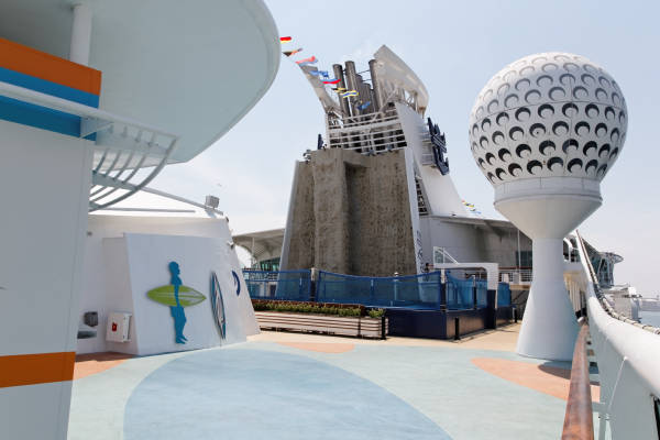 Sports-Deck der Liberty of the Seas mit Kletterwand, Minigolf, Flow Rider und Basketballplatz
