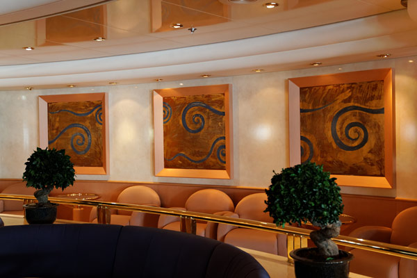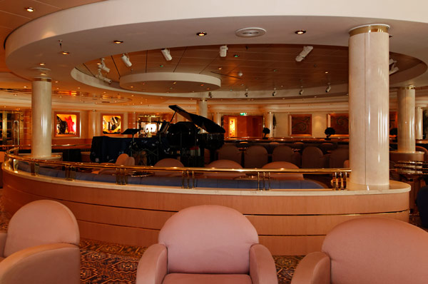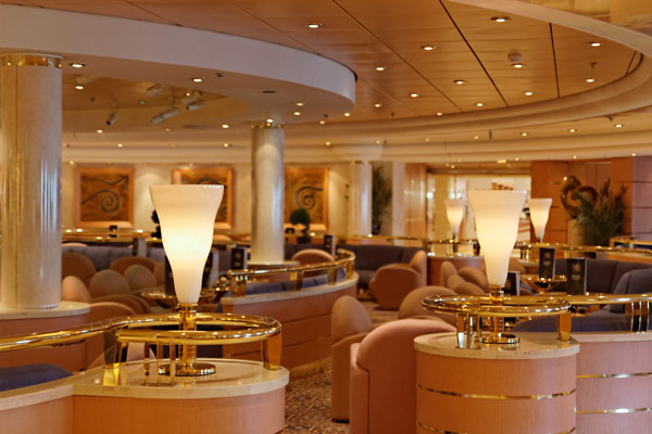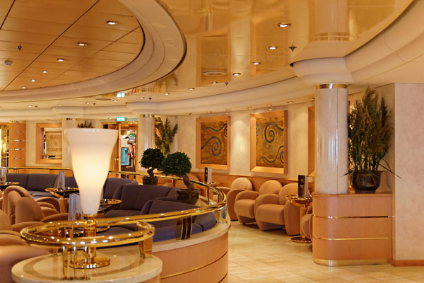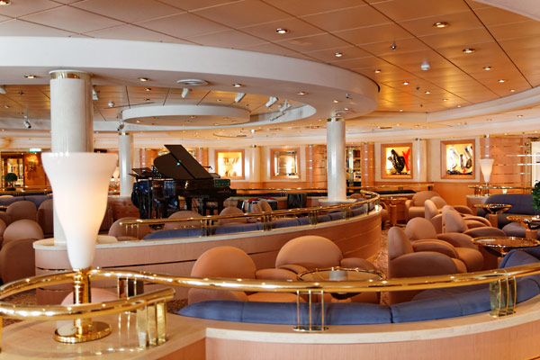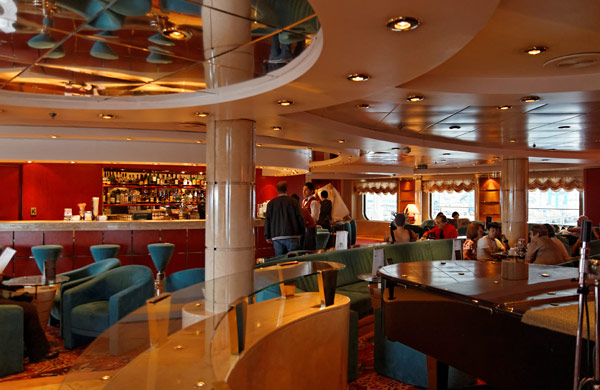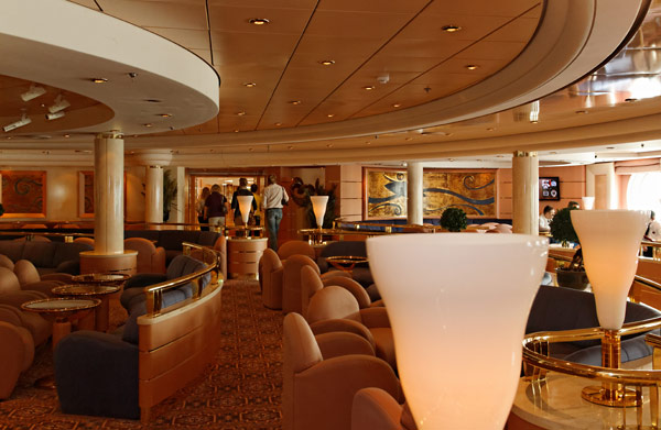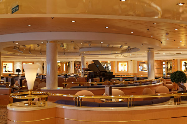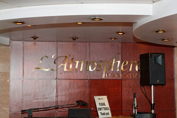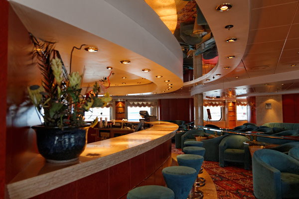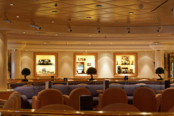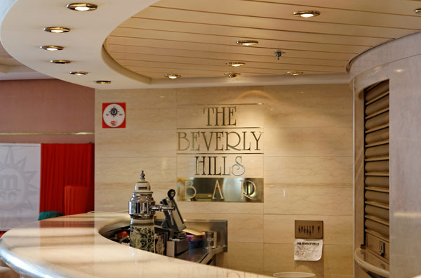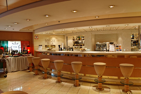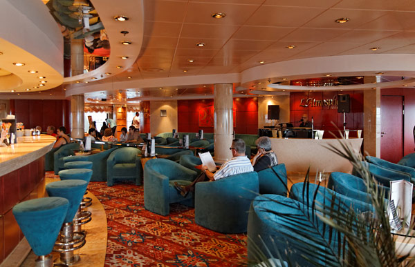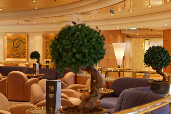 Bars und Lounges der MSC Lirica: Lirica Lounge, Cabaret, Blue Club Disco, Bibliothek und Card Room, Beverly Hills Bar, Lord Nelson Bar, Atmosphere Piano Bar, Gelateria, Vitamin Bar