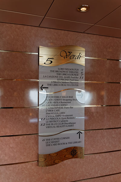 Weitere öffentliche bereiche der MSC Lirica: Theater, Casino, Internet Cafe, Spa, Photoshop, Treppen und Aufzüge