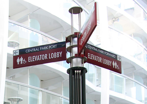 Einige Beispiele für die Vielzahl an Orientierungshilfen auf der Oasis of the Seas