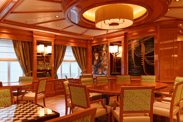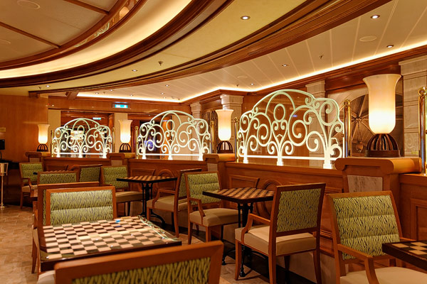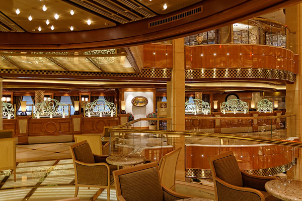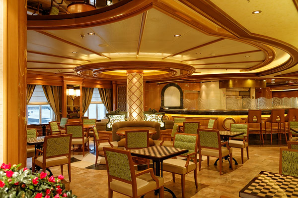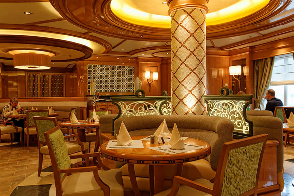 Restaurants der Royal Princess: Alfredo’s Pizzeria, Crown Grill, Dining Rooms Allegro, Concerto und Symphony, Gelato, Horizon Bistro und Court, Pastry Shop, International Cafe, Ocean Terrace Seafood Bar, Trident Grill, Swirls, Sabatinis