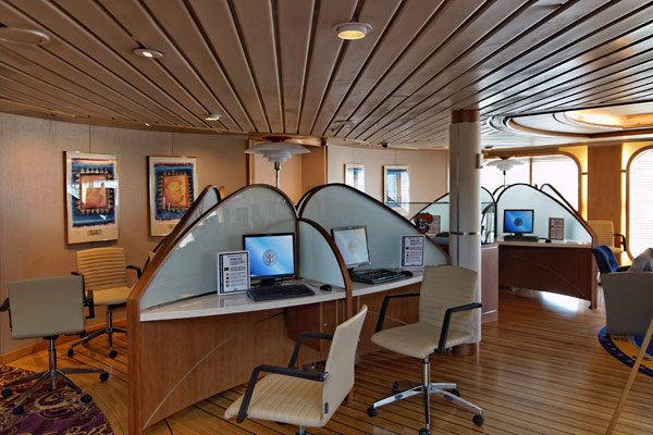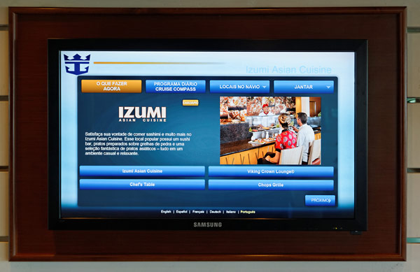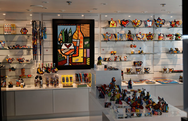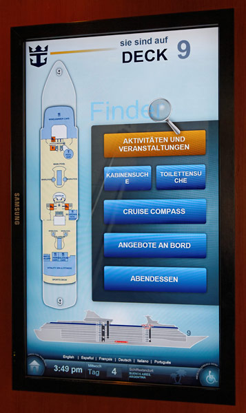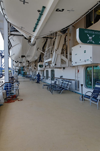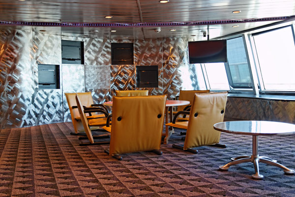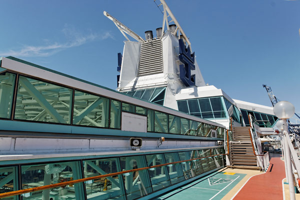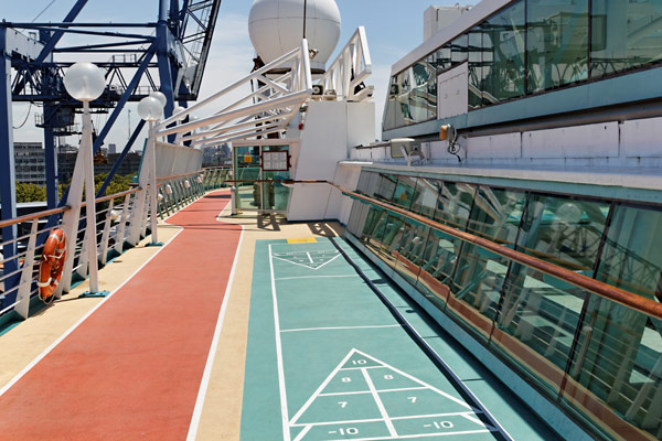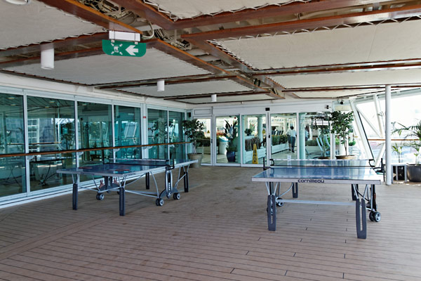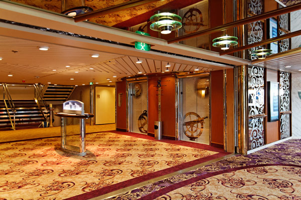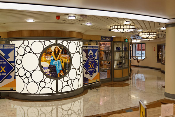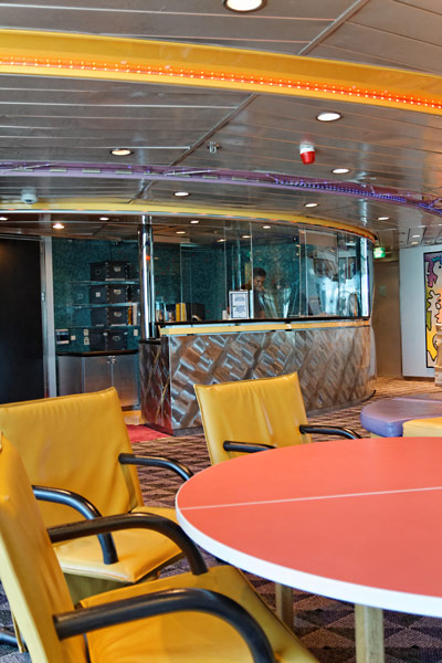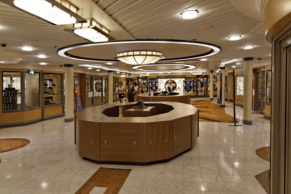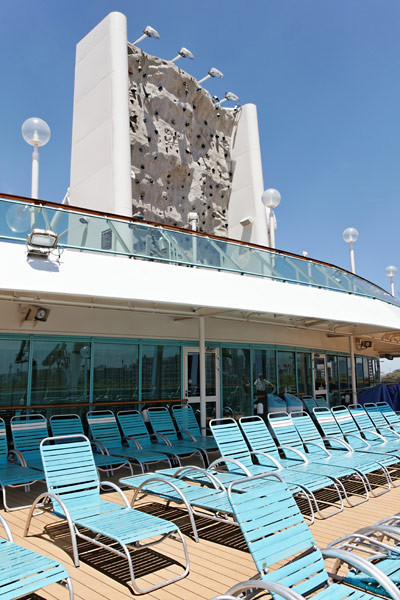 Sonstige Bereiche der Splendour of the Seas – Treppenhaus, Teenlounge Optix, Rmero Britto Gallery, Shops, Casino, Aussenbereiche: Kletterwand, Minigolf, Tischtennis