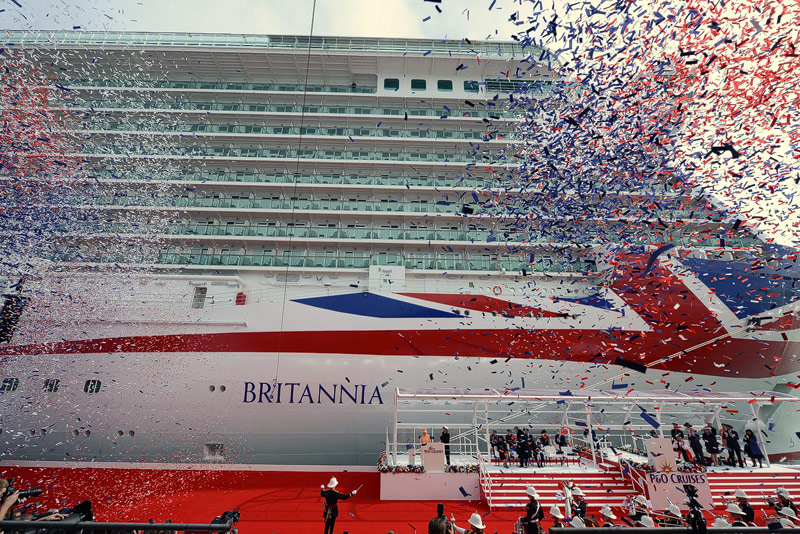 Queen Elizabeth II. hat in Southampton das neue Flaggschiff von P&O Cruises, die Britannia, getauft. Begleitet wurde die Queen von ihrem Mann Philip, Duke of Edinburgh. Die Britannia ist das größte je für den britischen Markt und für P&O Cruises gebaute Kreuzfahrtschiff und gehört mit einer Tonnage von 141.000 BRZ derzeit auch zu den zehn größten Kreuzfahrtschiffen weltweit.