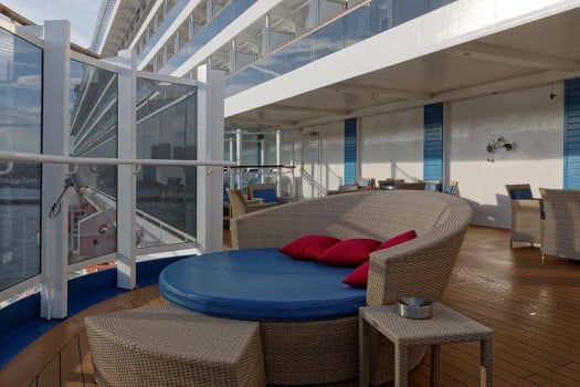 Ebenfalls auf der Promenade integriert ist der Lanai-Bereich. Hier zeigt Carnival Cruise Line ein Herz für Raucher: Der stille, mit sehr komfortablen Sonnenliegen ausgestattete Bereich abseits des Trubels ist mit Aschenbechern ausgestattet, Rauchen ausdrücklich erlaubt. Aber keine Sorge: Auch für Nichtraucher gibt es ähnlich schöne Plätze am Promenadendeck.