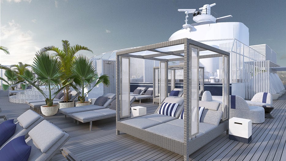 Alle Schiffe sollen das Suiten-Gäste exklusive „The Retreat“-Erlebnis bekommen, mit eigenen Sonnendeck und einer Lounge (bisher Michaels Club), wie es nach einem neuen Konzept auf der Celebrity Edge Premiere feiern wird. Das Design dafür stammt vom Stardesigner Kelly Hoppen.