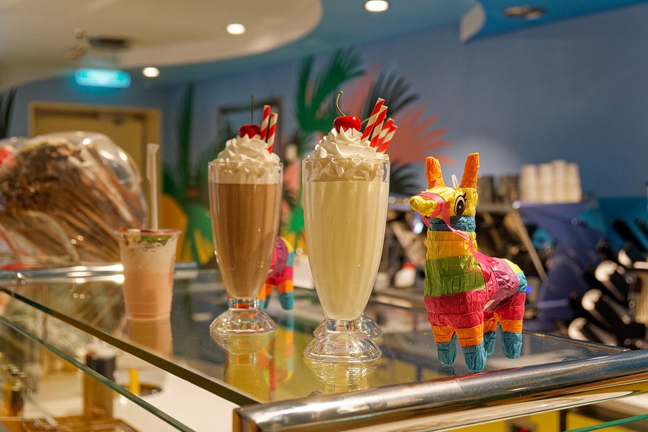 Wer den Kalorienverlust durch die Action auf Thrill Island wieder (mehr als) ausgleichen will, wirf einen Blick auf die Milchshake-Bar „Desserted“ – von denen es auch Varianten mit Alkohol gibt.