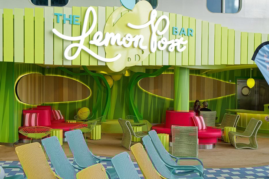 The Lemon Post Bar ist laut Royal Caribbean die erste Bar dieser Art nicht nur in der Kreuzfahrt, sondern in der ganzen Reisebranche. Das mag ein wenig übertrieben klingen, zumindest für den amerikanischen Markt mag es aber zutreffen. Denn Bars mit Alkoholausschank und Kinder passen in den USA eigentlich überhaupt nicht zusammen.