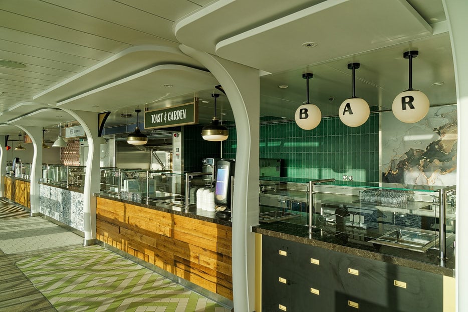 Bars wie das Pub „Point & Feather“, Boleros Bar und Schooner Bar sind offener gestaltet. Sie wirken damit nicht nur einladender, sondern tragen auch Musik und Stimmung mehr auf die Promenade hinaus und erscheinen weniger wie separate Bereiche.