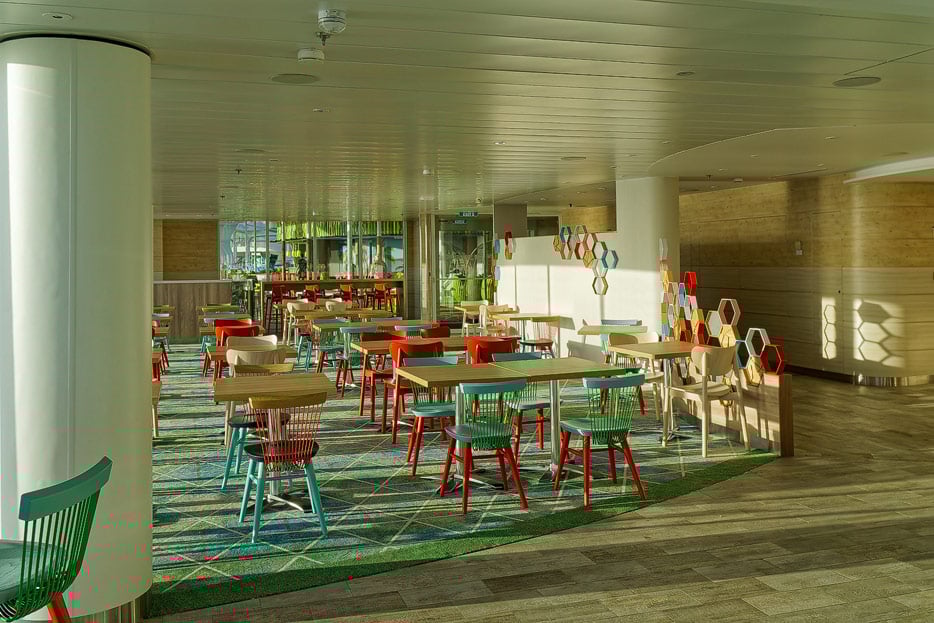 Zugänglich ist die Suite Neighborhood übrigens für Passagiere aller Suiten ab Grand Suite, nicht jedoch für Junior-Suiten. Letztere können aber das Coastal-Kitchen-Restaurant zum Dinner benutzen.
