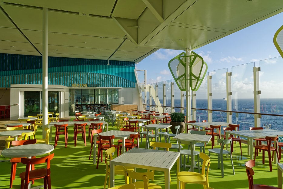 Neu ist das Restaurant „The Grove“ unter freiem Himmel am Sonnendeck 18 mit mediterraner Küche in Buffetform.