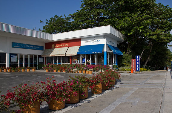 Eines der schönsten Cruise Terminals steht in – Cartagena, Kolumbien. Diese Überraschung erlebten wir heute nachmittag, als wir nach der Stadtbesichtigung für ein paas Schiffsfotos noch etwas an der Pier entlang liefen. Das „Manga“-Cruise-Terminal liegt eigentlich mitten im Container-Hafen von Cartagena, aber die Kolumbianer haben nahe des Kreuzfahrt-Anlegers eine kleine tropische Oase mitten im Containerhafenbereich gebaut, mit Café, Souvenir-Shop und einem richtigen, kleinen Zoo mit frei laufenden beziehungsweise frei fliegenden Tieren: Aras und kleinere Papageien, kleine Äffchen, Flamingos, Pfaue, Schildkröten und sogar einen Tukan.