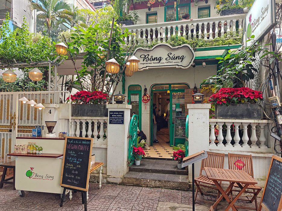 Kulinarisch sehr besonders wird es in Saigon auch bei unserer zweiten Reise in diese faszinierende Stadt: Wie sind mit Vegan Travel rein vegan unterwegs. Entsprechende essen wir auch in Saigon in veganen Restaurants – und da hat die Stadt sehr Leckeres zu bieten. Wir essen in insgesamt vier vegetarischen Restaurants, die aber jeweils auch eine große Auswahl an veganen Gerichten servieren: das „Bong Sung“ …