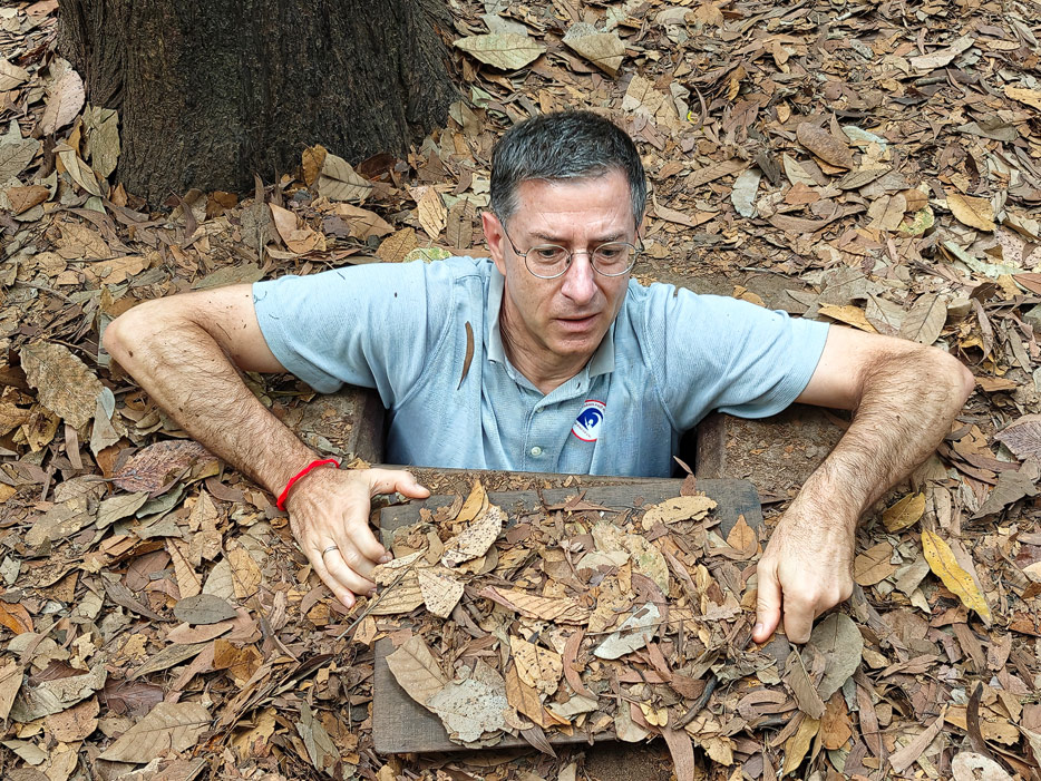 Schon im Guerilla-Krieg gegen die französischen Kolonialherren hatten sich die Vietnamesen ein Tunnelsystem gegraben, das während des Vietnamkriegs auf bis zu 350 Kilometer Gesamtlänge erweitert wurde. Auf drei Ebenen bis zu neun Meter unter die Erde und mit einem ausgeklügelten Fallensystem gegen Eindringlinge – erst Franzosen, dann Amerikaner – hatten die Menschen hier quasi einen unterirdischen Lebensraum aufgebaut, um sich zu verstecken und so dem Tod zu entkommen.