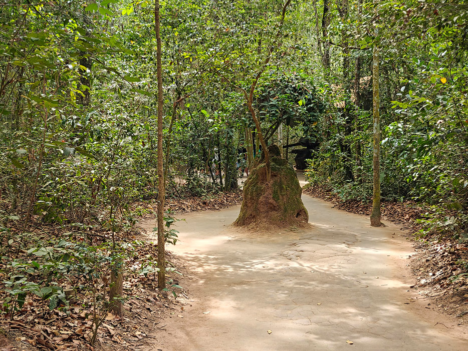 Der zweite dieser Orte sind die bekannten Cu-Chi-Tunnels etwa 45 Kilometer von Saigon entfernt – wobei eine Busfahrt dorthin im dichten Stadtverkehr auch mal zwei Stunden dauern kann.