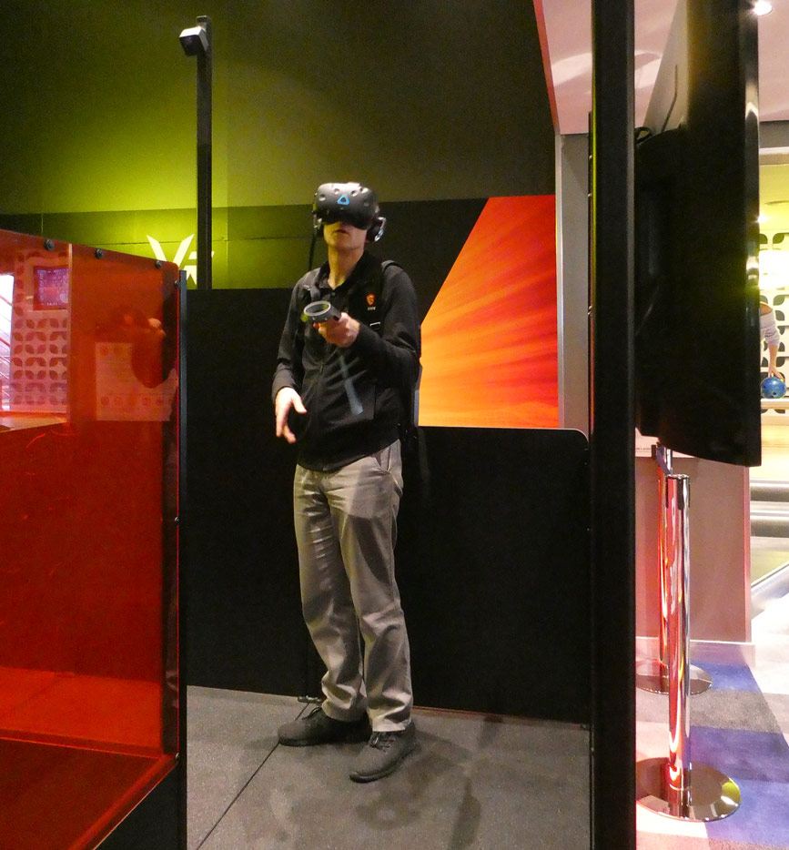 Neu ist im Action-Bereich das virtuelle 3D-Maze: Mit VR-Brille, Kopfhörer und virtuellen Waffen ausgestattet, begibt man sich in ein ohne Brille betrachtet winziges Labyrinth, das mit der VR-Ausrüstung aber zu einer komplett eigenen Welt wird.