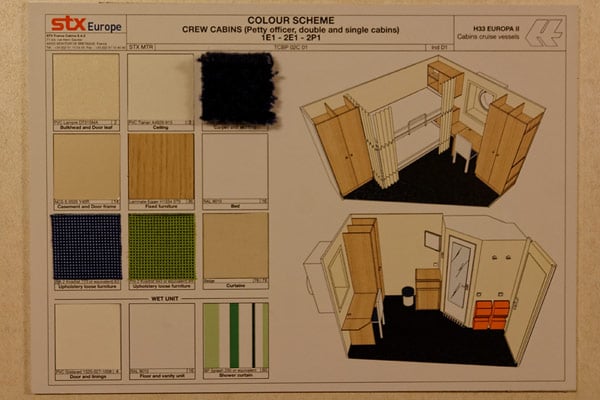 Obwohl die fertigen Suiten bereits von der Reederei abgenommen und deshalb am Schiff verplombt sind, ist ein Blick auf die Spa Suiten und Veranda Suiten sowie einen Kabinengang der Europa 2 möglich, denn es gibt nahezu identische Kopien in einem Showroom der Kabinen-Fabrik der STX-Europe Werft im französischen Saint Nazaire, sogenannte Mock-ups. Aber auch einen Blick in die erstaunlich komfortablen Crew- und Offiziers-Kabinen konnten wir dort werfen.