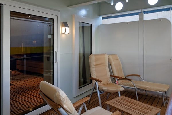 Der Balkon ist tief genug für die speziell für die Europa 2 nachgebauten Liegestühle – sie sind identisch mit den Liegen auf der Europa, waren beim Hersteller aber nicht mehr im Angebot; für die Europa 2 legte der Hersteller sie wieder neu auf.