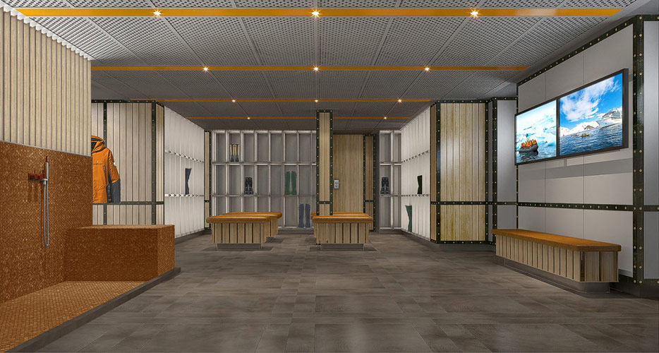 - über einen speziellen Ausstieg („Ice Egress Gangway“) sollen Passagiere sogar vom Schiff auf See-Eis umsteigen können, um dort ein paar Schritte zu laufen.