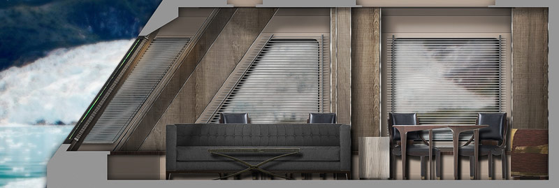Ungewöhnlich wird das Innendesign der Ventus Australis sein: Das Schiff steht unter dem Motto „Safari“. Entsprechend finden sich in den Suiten beispielsweise Schränkchen, die alten Überseekoffern nachempfunden sind, oder mit Leder bespannte Holz-Stühle. Dennoch wirkt das Design auf den bislang veröffentlichten Computer-Renderings frisch, modern und hell.