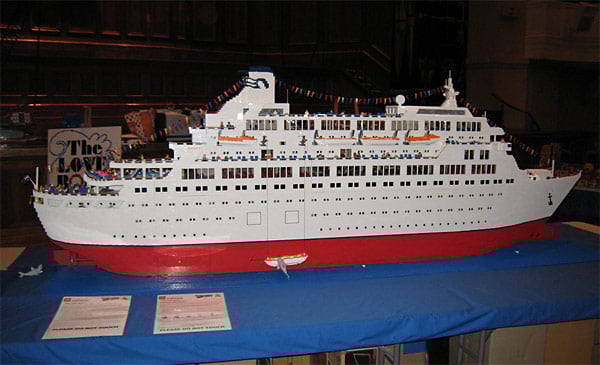 Ein Kreuzfahrtschiff komplett aus Lego gebaut ist derzeit in Chicago auf der Brickworld Lego-Convention zu sehen. Der Australier Ryan McNaught hat aus rund 250.000 Lego-Steinen das original „Love Boat„, die Pacific Princess, nachgebaut – 3,2 Meter lang, rund 1,5 Meter hoch und über 160 kg schwer; Bauzeit: etwa drei Monate. Der Clou: Von einer Seite ist das Schiff von außen zu sehen, von der anderen als Querschnitt mit zahlreichen Details aus dem Innenleben des berühmten Kreuzfahrtschiffs.
