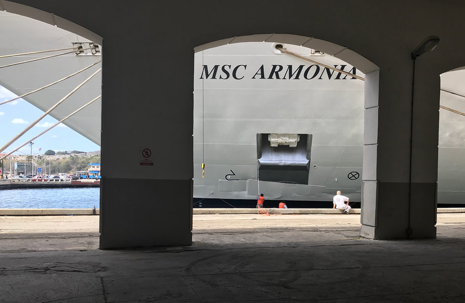 Update 11.4., 10:30 Uhr: MSC kommentiert: „Die Gründe für diesen Vorfall werden aktuell untersucht. Für die Gäste und Besatzung an Bord bestand zu keiner Zeit ein Risiko, auch auf die Umwelt hat dieser Zwischenfall keinerlei Auswirkungen. Alle Passagiere konnten nach einer kurzen Verzögerung beim Ausschiffen pünktlich zu ihren geplanten Landausflügen starten. Die MSC Armonia wurde bereits von den Hafenbehörden vor Ort untersucht und das Schiff – nach Reparatur der geringfügigen Schäden – für die Weiterfahrt freigegeben. Die MSC Armonia wird um ca. 2:00 Uhr Ortszeit den Hafen von Roatán verlassen und gegen 10:00 Uhr morgens in Belize, dem nächsten planmäßigen Hafen der Route, eintreffen.“