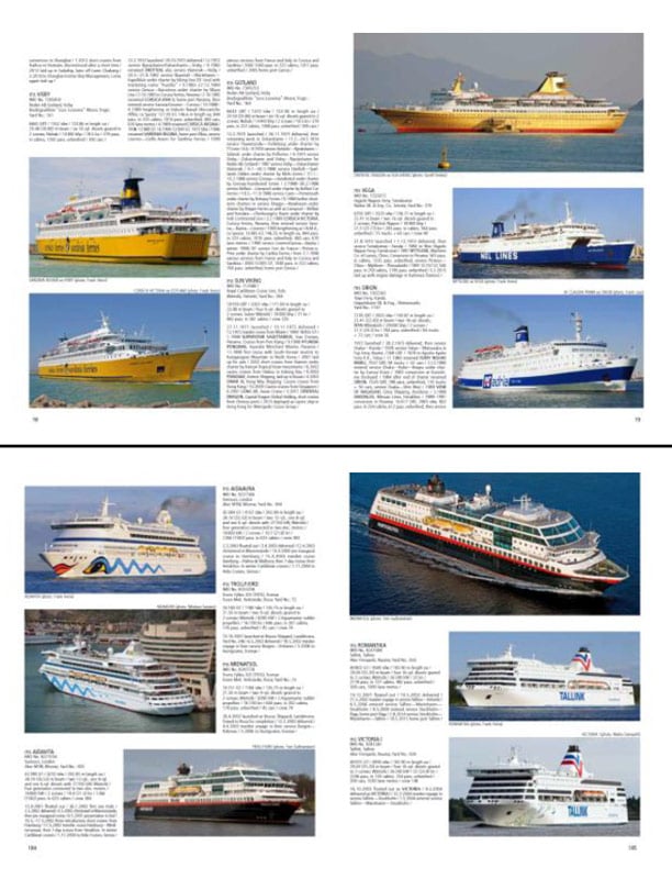 Die Angaben zu den Schiffen umfassen Standardwerte wie Tonnage, Passagierzahlen, Maschinen- und Antriebstechnik ebenso wie wesentliche geschichtliche Fakten wie beispielsweise Namenswechsel, Umbauten und schwerere Unfälle. Bei älteren Schiffen wie etwa der Astoria, ex Stockholm, kann das schonmal zwei Drittel eine Buchseite umfassen, bei ganz neuen Schiffen genügen ein paar Zeilen.