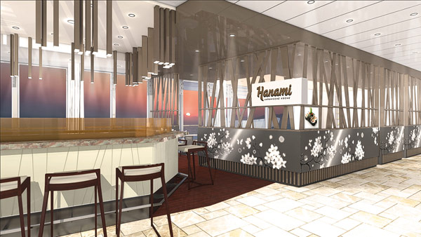 Neu sollen auf der Mein Schiff 3 außerdem ein zuzahlungspflichtiges, japanisches Spezialitätenrestaurant mit Namen „Hanami“ mit japanischen Spezialitäten und Sushi hinzukommen.