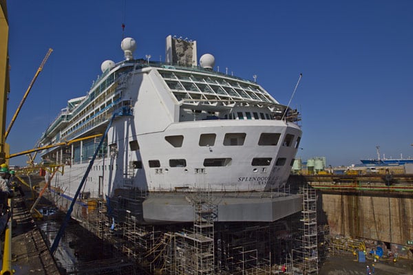 Während ihres einmonatigen Werftaufenthaltes vom 25. Oktober bis 24. November 2011 wird die Splendour of the Seas im spanischen Cadiz im Trockendock der Werft Navantia komplett renoviert und umgebaut, nahezu kein Bereich des Schiffs bleibt unangetastet. Ein Überblick über die wichtigsten Neuerungen: