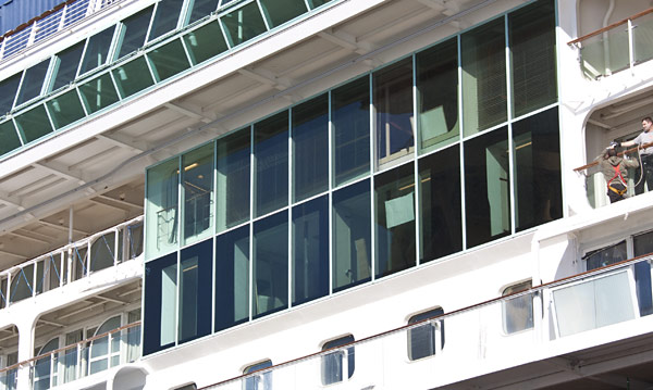 Insgesamt bekommt die Splendour of the Seas aber auch 13 neue Passagierkabinen und neun neue Crew-Kabinen. Bei den Passagierkabinen kommt eine Familysuite sowie eine Innenkabine hinzu, vor allem aber 11 neue Aussenkabinen mit einer reizvollen Neuheit: große Panorama-Fenster, die von der Decke bis zum Boden reichen. Zu öffnen sind die Fenster freilich nicht.