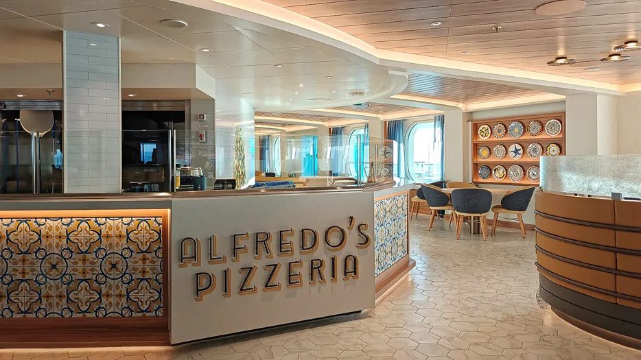 Deutlich günstiger geworden ist das Fine-Dining-Menü im „Love by Britto“, das zuvor 149 Dollar kostete und nun ebenfalls bei 60 Dollar liegt. Die „Casual Dining“-Restaurants Alfredo’s Pizzeria und das Essen im O’Malley’s Irish Pub kosten pauschal 14,99 Dollar (plus 18 Prozent Servicegebühr) für ein Menü mit Appetizer, Hauptgang (Pizza/Calzone beziehungsweise Burger, Pie, Fish & Chips) und Dessert. Bei Alfredo’s kann man auch a-la-carte essen (Antipasti 5,50 Euro, Pizza 8,50 bis 12 Dollar, Dessert 4 Dollar). Tipp: Die Pizza gehört zu den besten, die man auf einem Kreuzfahrtschiff bekommen kann.