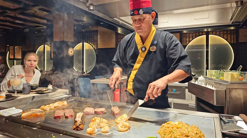 Auf der Sun Princess erstmal bei Princess Cruises und nun auch auf der Star Princess ist der japanische Teppanyaki-Grill, den es bei anderen Reedereien schon seit vielen Jahren gibt. Wie dort steht beim Teppanyaki auch auf der Star Princess das Entertainment im Vordergrund. Es macht Spaß, aber wer es auf anderen Schiffen schon erlebt hat, wird nichts Neues oder Herausragendes erleben.