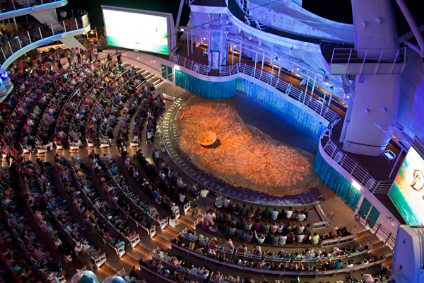 Faszinierend ist auch der Blick auf die Aqua Shows von der hinteren Reling des Sports-Decks, quasi senkrecht nach unten ins Aqua-Theater. Allerdings hält man dort kaum die ganze Show lang durch.