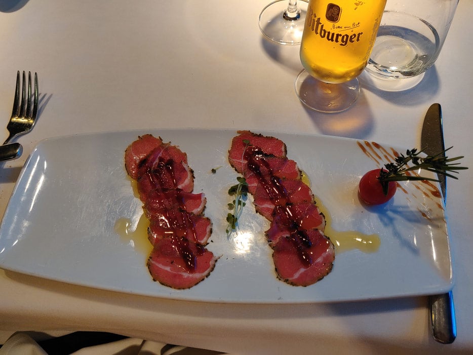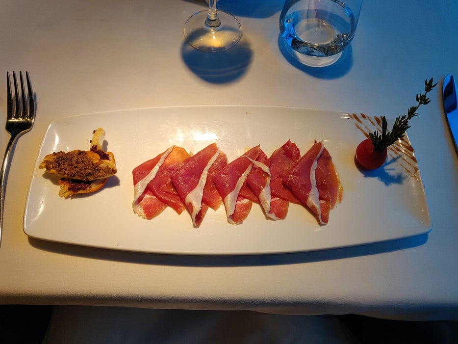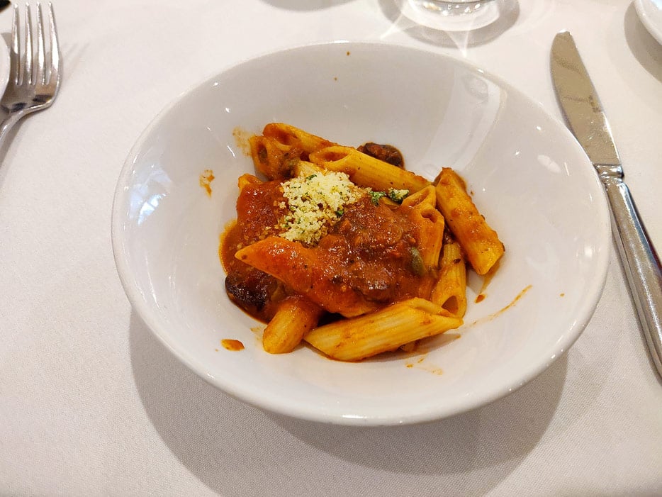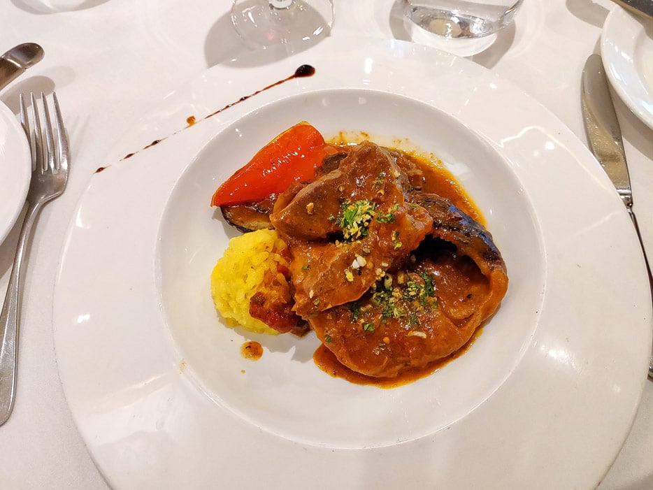 „The Grill“ kostet pauschal 29 Euro, für Surf & Turf mit Hummer fallen moderate 5 Euro Aufpreis an. Die Auswahl ist nicht so groß wie in Steakhäusern amerikanischer Kreuzfahrtschiffe, dafür sind die Steaks aber exzellent, kommen genau in der bestellten Garstufe und auch die Beilagen können sich sehen lassen.