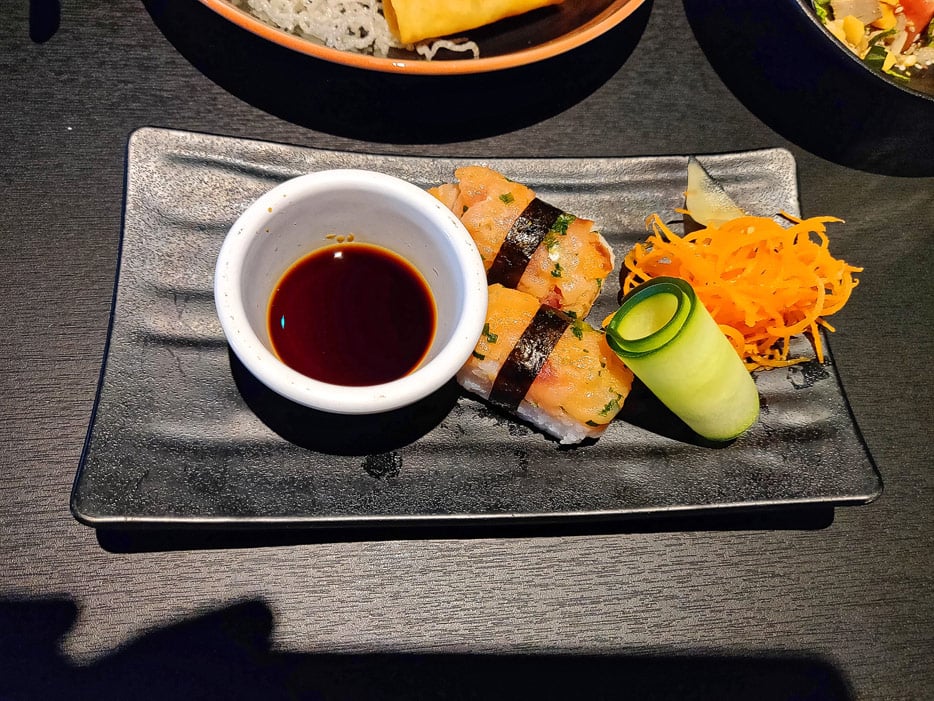 Im elegant dunkel und mit blauem Licht gestalteten Waterfront Eurasia stehen asiatische Gerichte auf der Karte.