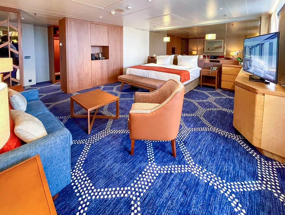 Alle Kabinen sollen neue Teppiche, Sofas, Sessel und TV-Geräte bekommen. Die Badewannen bekommen eine Glastrennwand, die Balkone neue Möbel. Ein komplettes Make-Over verspricht die Reederei für die 29 Suiten der Vasco da Gama.