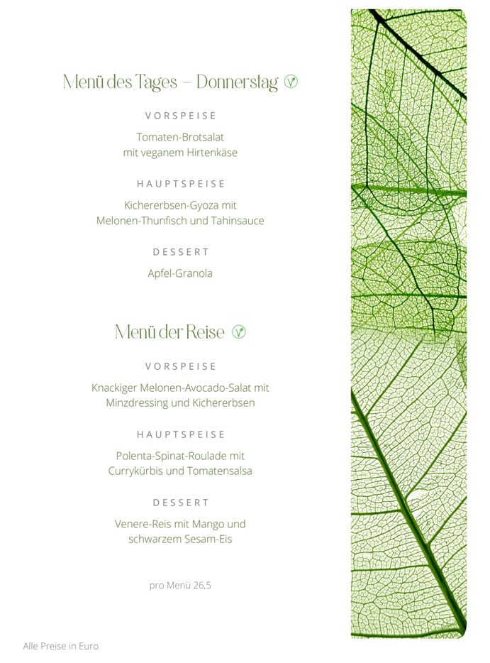 Auch wenn „vegan“ in der Kreuzfahrt durchaus ein starker Trend ist, gibt es weltweit unseres Wissens derzeit nur auf den drei AIDA-Schiffen AIDAnova, AIDAprima und AIDAperla ein ausschließlich veganes Restaurant. Ähnliches gibt es nur bei der britischen P&O Cruises auf der Arvia seit Dezember 2022 mit dem „Green & Co.“, das mit einem (nicht-veganen) Sushi-Restaurant kombiniert ist. Und beim Food-Hall-Konzepten auf einigen NCL-Schiffen gibt es eine „plant based“-Food-Station namens „Planterie“.