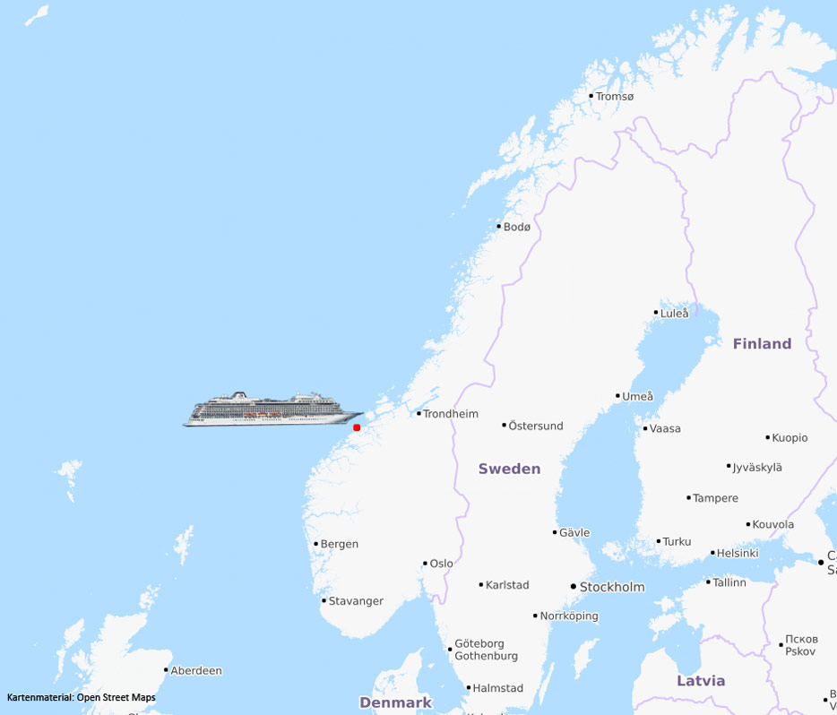 Auf der Website des Dagbladet ist ein Video der laufenden Rettungsaktion am Abend zu sehen: https://www.dagbladet.no/nyheter/cruiseskip-har-sendt-ut-mayday—1300-passasjerer-evakueres/70905728.
