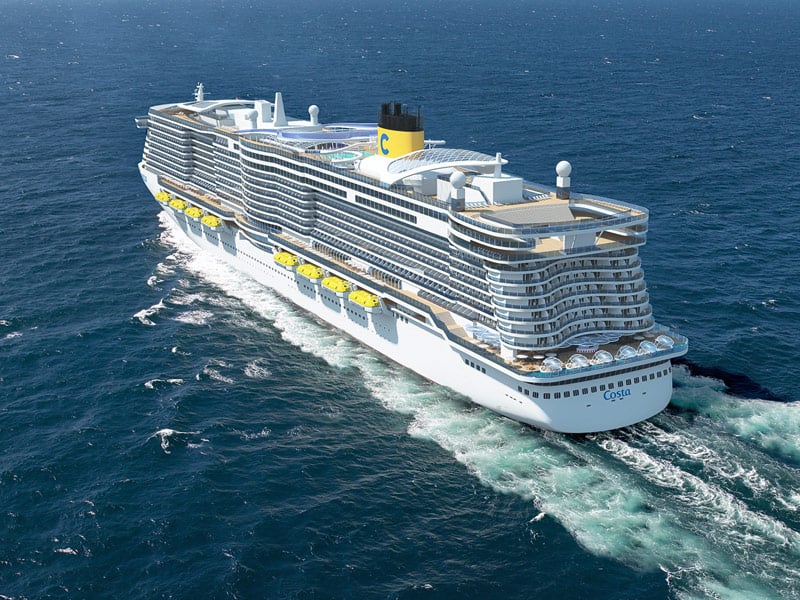 Costas bislang größtes Schiff, die 2014 in Dienst gestellte Costa Diadema, hat eine Tonnage von BRZ 132.500 und bietet Platz für bis zu 4.947 Passagiere.