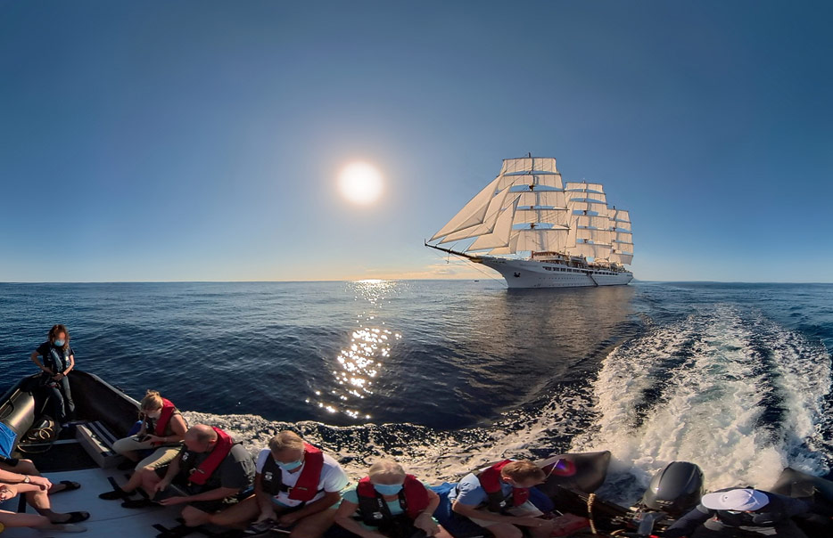 Ganze oder halbe Seetage unter Segeln haben also eine deutlich höhere Priorität als sonsten Seetage auf Kreuzfahrten und auch Hafenstopps werden dafür schonmal in gewissem Umfang verändert. Ein Highlight jeder Segelkreuzfahrt ist außerdem eine Ausfahrt per Zodiac-Schlauchboot zum Ansehen und Fotografieren des Schiffs unter vollen Segeln auf See.